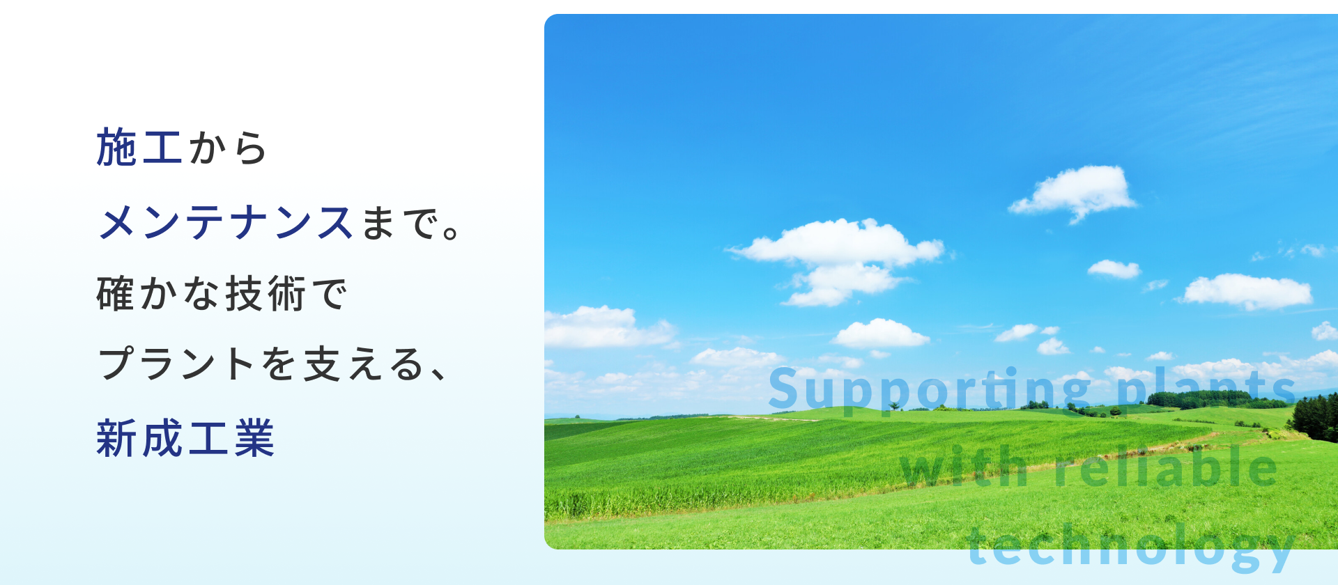 新成工業株式会社では、プラント施工・製品生産・保守メンテナンスを通じて